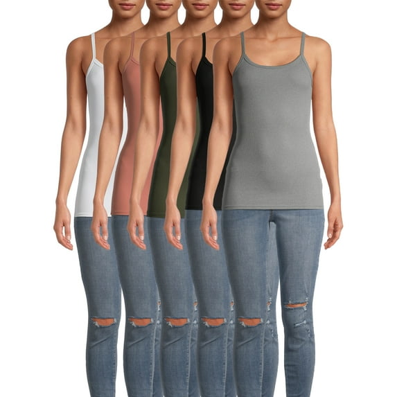 No Boundaries Ribbed Cami Top, 1 or 5-Pack, Women's