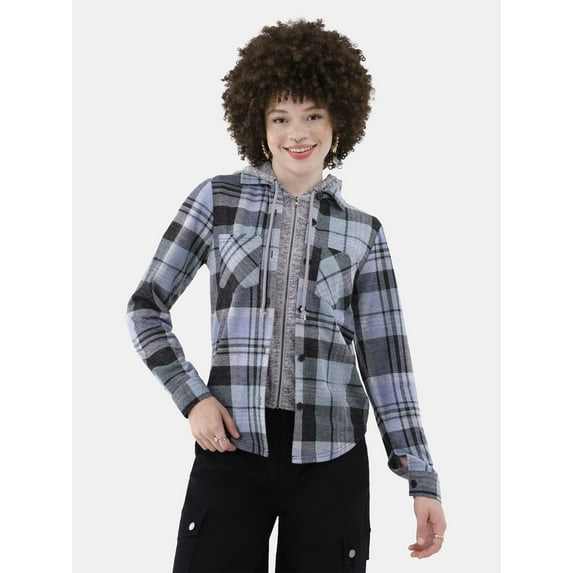 No Boundaries Plaid Button Down Shirt, Women's