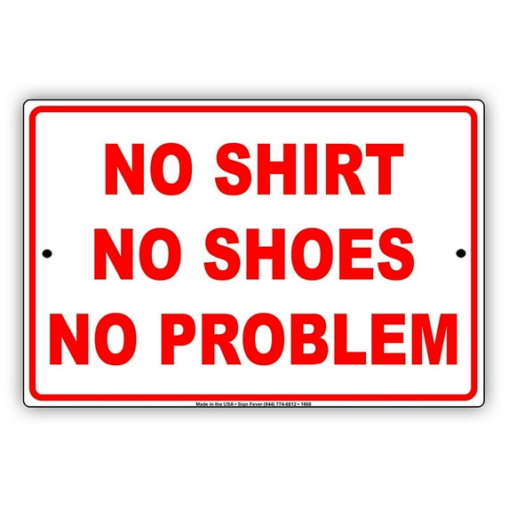 No Shirt No Shoes No Problem Party Gag Jokes Funny Meme Notice Aluminum Note Metal Sign 18"x24" PlateNo Shirt No Shoes No Problem Party Gag Jokes Funny Meme Notice Aluminum Note Metal Sign 18 x24 PlateNo Shirt No Shoes No Problem Party Gag Jokes Funny Meme Notice Aluminum Note Metal Sign 12 x18 PlateNo Shirt No Shoes No Problem Party Gag Jokes Funny Meme Notice Aluminum Note Metal Sign 8 x12 Plate