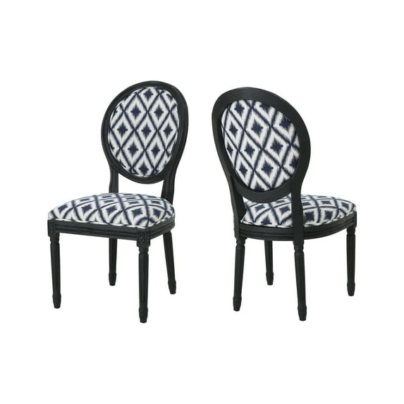 Hero image 0 of Noble House Evanora Traditional Fabric Dining Chairs, Navy Blue Chevron, 0 of 12