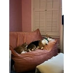 I really like this chair, I did primarily get it for my dog but I love it too! It's a really cute color, my chair came with stuffing directions (back piece first, then arms, then the seat. Note the pieces are tapered to make the points at the corners so they need to be put in directionally). With any beanbag type chair, you need to fluff and fix the cushions time to time. It's a good size, the seat is quite deep, and it's nice that it's low because my dog has trouble jumping up on furniture.