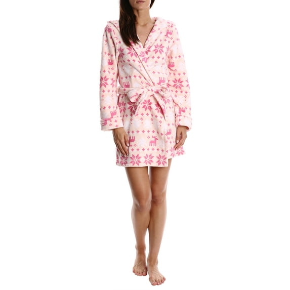 Nomad Women's Plush Robe - Ladies Lounge & Sleepwear Bottoms - Pink Fairisle, LargeNomad Women s Plush Robe Ladies Lounge Sleepwear Bottoms Pink Fairisle Large