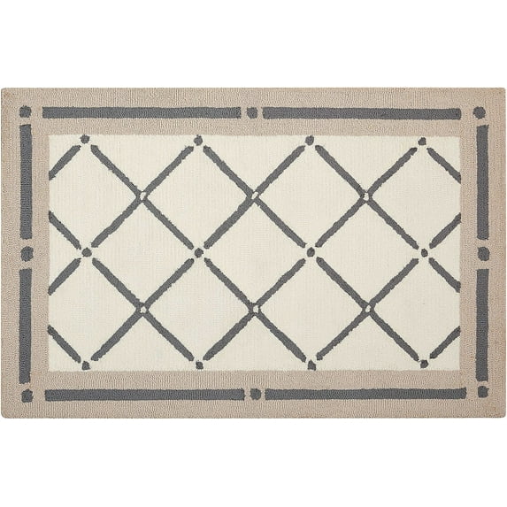 An open and spacious diamond motif in soft ivory and beige. A fashion-forward accent rug for todays sense of upbeat style. Expertly machine-tufted from premium polyester yarns, precision-printed for vibrant and lasting color.