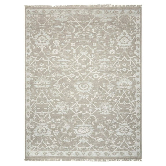 A traditional floral on the Nourison Elan Bordered Indoor Area Rug - Gray is made ultra versatile by its ivory on silver gray palette. This richly textured area rug is handcrafted from a blend of wool and silky bamboo fibers that lend a subtle shimmer. For an added touch, it's finished in fringe. This area rug comes in your choice of available size options.