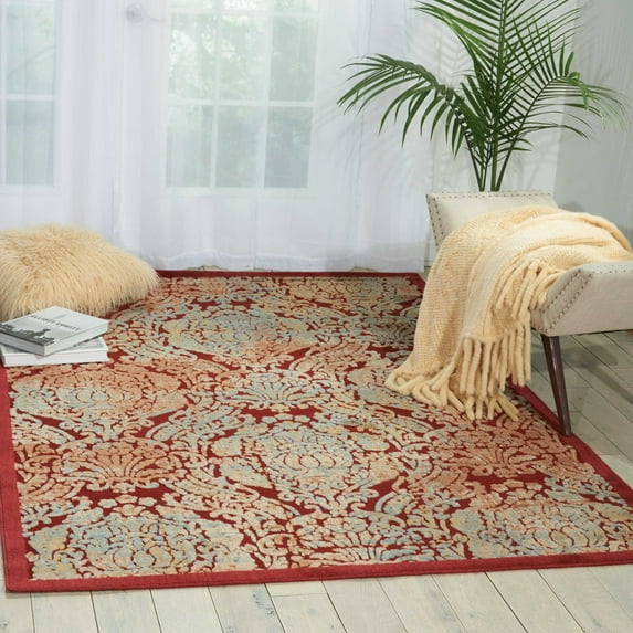 Nourison Graphic Illusions 3'6" x 5'6" Red Damask Indoor Rug