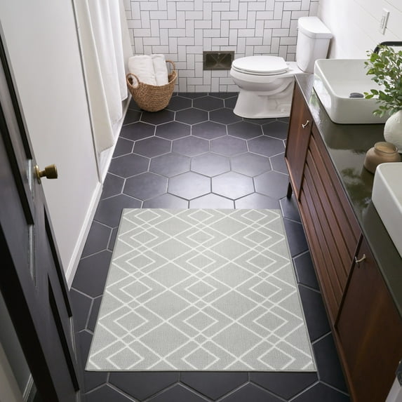 Nourison Modern Lines Geometric Silver 2' x 4' Area Rug, (2x4)