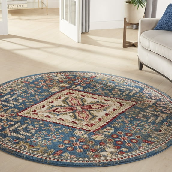 Nourison Revel Farmhouse Persian Blue Ivory 6' x ROUND Area Rug, (6' Round)