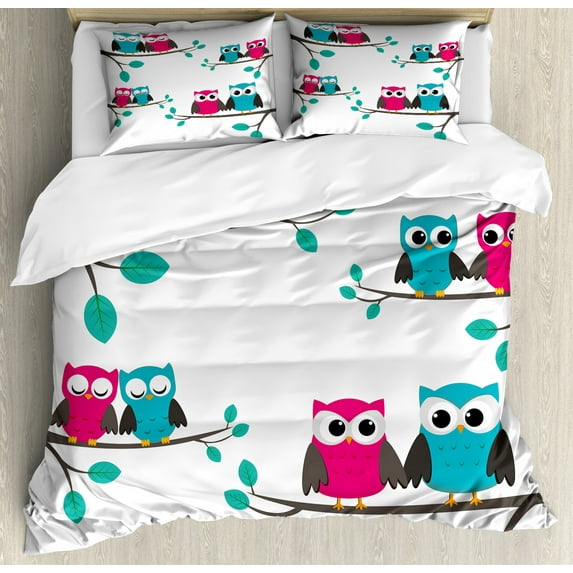 Nursery Duvet Cover Set King Size, Couples of Owls Sitting on Spring Branches Cute Funny Cartoon Characters, Decorative 3 Piece Bedding Set with 2 Pillow Shams, Turquoise Blue Pink, by AmbesonneNursery Duvet Cover Set King Size Couples Owls Sitting Spring Branches Cute Funny Cartoon Characters Decorative 3 Piece Bedding 2 Pillow Shams TurquoNursery Duvet Cover Set Queen Size Couples Owls Sitting Spring Branches Cute Funny Cartoon Characters Decorative 3 Piece Bedding Set 2 Pillow Shams TNursery Duvet Cover Set Twin Size Couples Owls Sitting Spring Branches Cute Funny Cartoon Characters Decorative 2 Piece Bedding Set 1 Pillow Sham Tur
