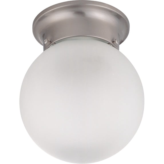 1 Light - Brushed Nickel - Frosted White Glass Ball Shade - Flush Mount - Utility | Nuvo Ceiling Light Fixture