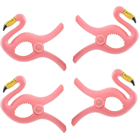 O2COOL Pink Flamingo Shape 4 Piece Plastic Beach Towel Clip, Portable Pool Towel Holders/Clamps