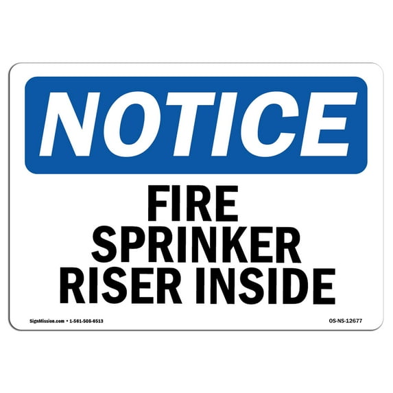 Product | Viewing this itemOSHA Notice Signs - Fire Sprinkler Riser Inside | Decal | Protect Your Business, Construction Site, Warehouse | Made in the USA ![]() $36.99 current price $36.99 | SignMission OS-NS-D-1014-L-11947 OSHA Notice Sign - Employee Entrance Only ![]() $10.99 current price $10.99 | SignMission OS-NS-D-1014-L-18786 OSHA Notice Sign - UPS Room Do Not Enter Sign with Symbol ![]() $10.99 current price $10.99 | SignMission OS-NS-D-1014-L-11394 OSHA Notice Sign - Do Not Turn On the Water Sign with Symbol ![]() $10.99 current price $10.99 |
