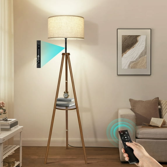 274.3 out of 5 Stars. 27 reviewsShipping, arrives in 3+ daysDAYBETTER Floor Lamp for Living Room, 63'' Wood Tripod Floor Lamp with Shelves, 3 Color Temperature, Dimmable, Remote Control Standing Lamp for Living Room, Bedroom, Office, LED Bulbs Included $51.99 Was $79.99