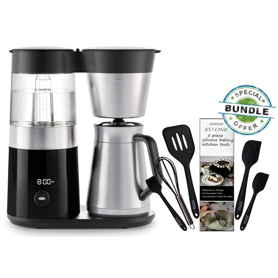 The OXO 9-Cup Coffee Maker controls brewing time, water temperature and volume for rich, flavorful coffee at the push of a button. BetterBrew™ precision automatically optimizes brewing time and keeps the temperature between 197.6–204.8° -- the ideal range for a better-tasting brew. The double-wall stainless steel thermal carafe keeps your coffee piping hot, while the internal mixing tube ensures your last sip is as delicious as your first. With a pause and pour feature, automatic wake-up timer and freshness indicator; the OXO Brew 9-Cup Coffee Maker is recognized as an exemplary home brewer by the SCA (Specialty Coffee Association) for delivering rich, gold-standard coffee – every time. Note: Voltage is 120V/60Hz. zonoz Premium Silicone Spatula Set - Ultra Heat-Resistant Spatula - Seamless Design - Pro-Grade BPA Free Non-Stick Silicone Rubber with Reinforced Stainless Steel S-Core Technology (5-Piece Set Black)