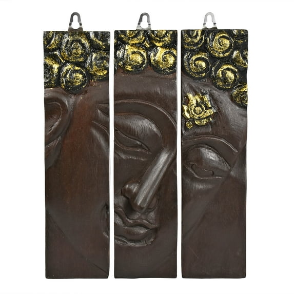 Hero image 0 of Oak Buddha Face Three-Panel Hand carved Wood Wall Art 8"x10", 0 of 6