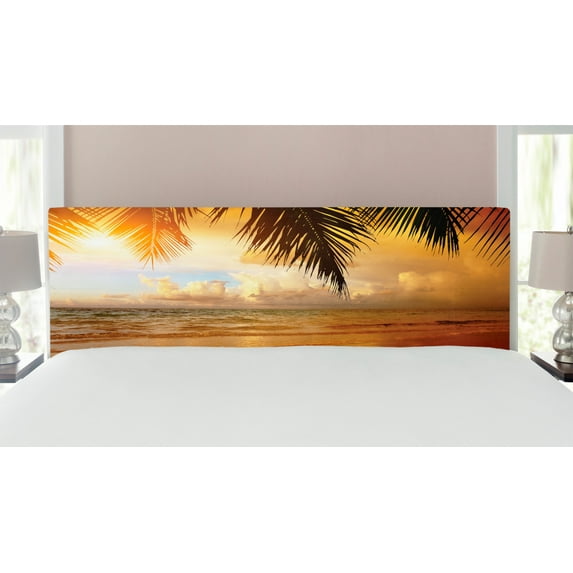 Ocean Headboard, Sunset on the Beach of Caribbean Sea Waves Coast with Palm Tree, Upholstered Decorative Metal Bed Headboard with Memory Foam, King Size, Dark Orange Pale Blue, by AmbesonneOcean Headboard Sunset Beach Caribbean Sea Waves Coast Palm Tree Upholstered Decorative Metal Bed Headboard Memory Foam King Size Dark Orange Pale BlOcean Headboard Sunset Beach Caribbean Sea Waves Coast Palm Tree Upholstered Decorative Metal Bed Headboard Memory Foam Twin Size Dark Orange Pale Bl