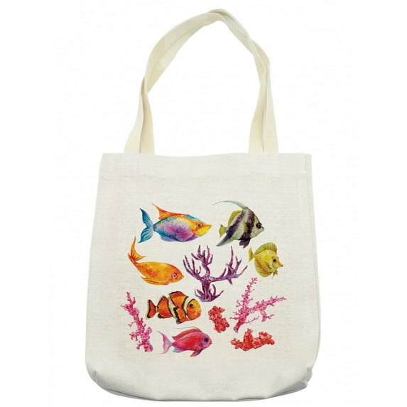 Hero image 0 of Ocean Tote Bag, Illustration of Tropical Fish Seaweed Coral Algae and Jellyfish Oceanic Wild Life, Cloth Linen Reusable Bag for Shopping Books Beach and More, 16.5" X 14", Cream, by Ambesonne, 0 of 2