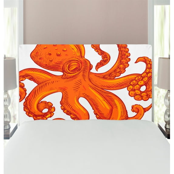 Octopus Headboard, Octopus Pattern Illustration Underwater World Wild Nature Themed Art Print, Upholstered Decorative Metal Bed Headboard with Memory Foam, Twin Size, Orange White, by AmbesonneOctopus Headboard Pattern Illustration Underwater World Wild Nature Themed Art Print Upholstered Decorative Metal Bed Headboard Memory Foam Twin SizeOctopus Headboard Pattern Illustration Underwater World Wild Nature Themed Art Print Upholstered Decorative Metal Bed Headboard Memory Foam King Size