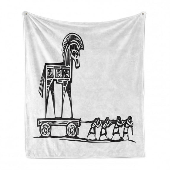 Hero image 0 of Odyssey Soft Flannel Fleece Throw Blanket, Monochromatic Greek Historical Wooden Horse Troy Image, Cozy Plush for Indoor and Outdoor Use, 60" x 80", Charcoal Grey and White, by Ambesonne, 0 of 6