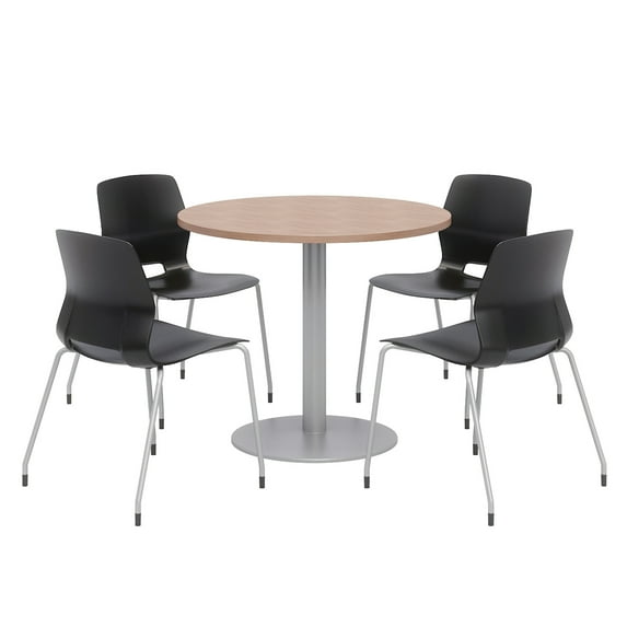 4 optionsAvailable in additional 4 options$43292current price $432.92Options from $432.92 – $472.61Flash Furniture 36'' Square Natural Laminate Table Set with Round Base and 4 Black Trapezoidal Back Banquet Chairs