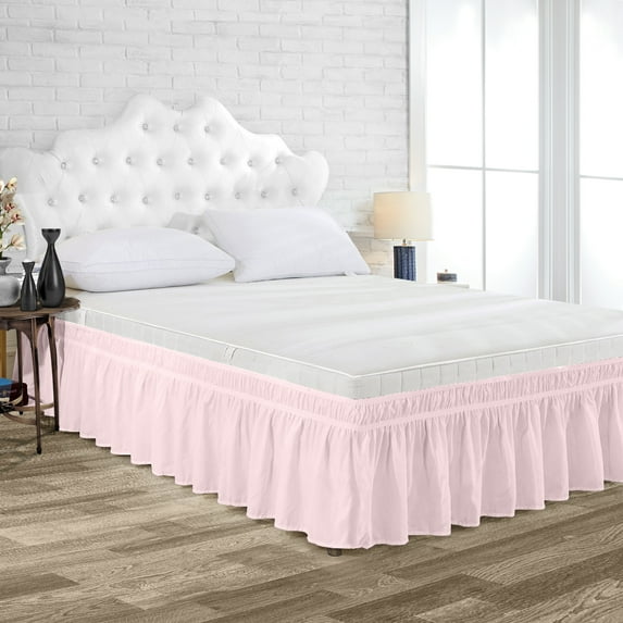 Hero image 0 of Olympic Queen Size Tailored Drop Wrap Around Solid Bed Skirt with Adjustable Elastic Belt Microfiber Fabric Fade & Wrinkle Resistant Bed Frame Cover Easy to Fit & Care (26 Inch Drop, Pink), 0 of 4