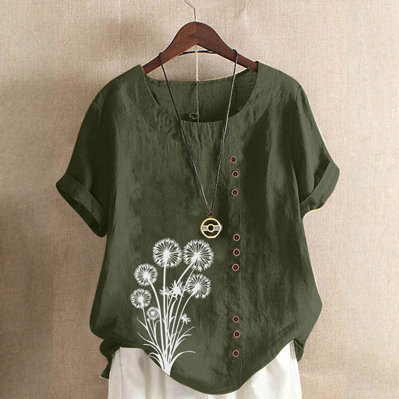 Hero image 0 of Olyvenn Cotton Linen Flower Shirts for Women Plus Size Summer Beach Short Sleeve Casual Loose Comfy Blouses Tunic Tops Army Green XXL, 0 of 4