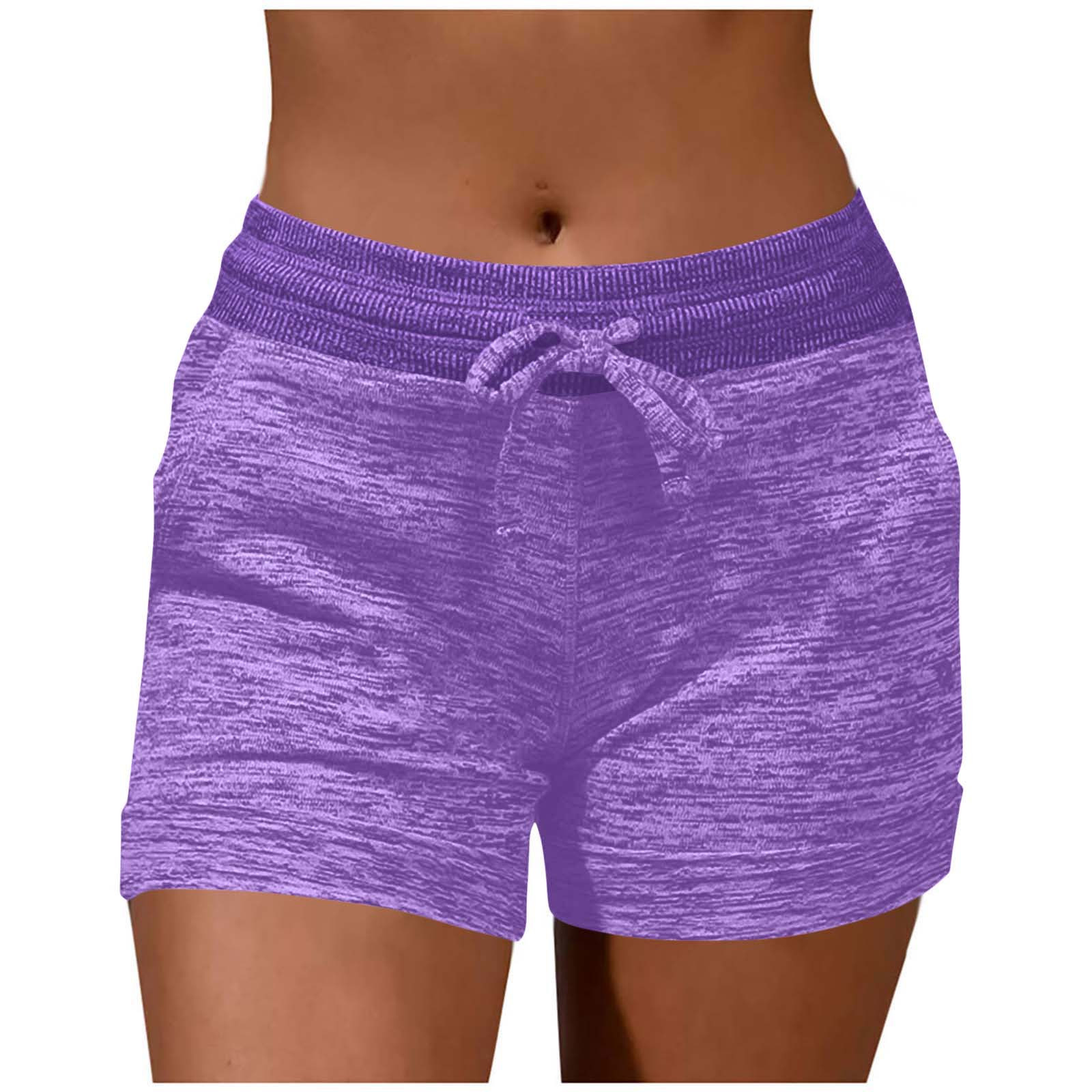 Olyvenn Stylish Womens Summer Shorts Trendy Drawstring Loose Yoga Pants Elastic High Waisted Beach Shorts Comfy Short Pants Purple S