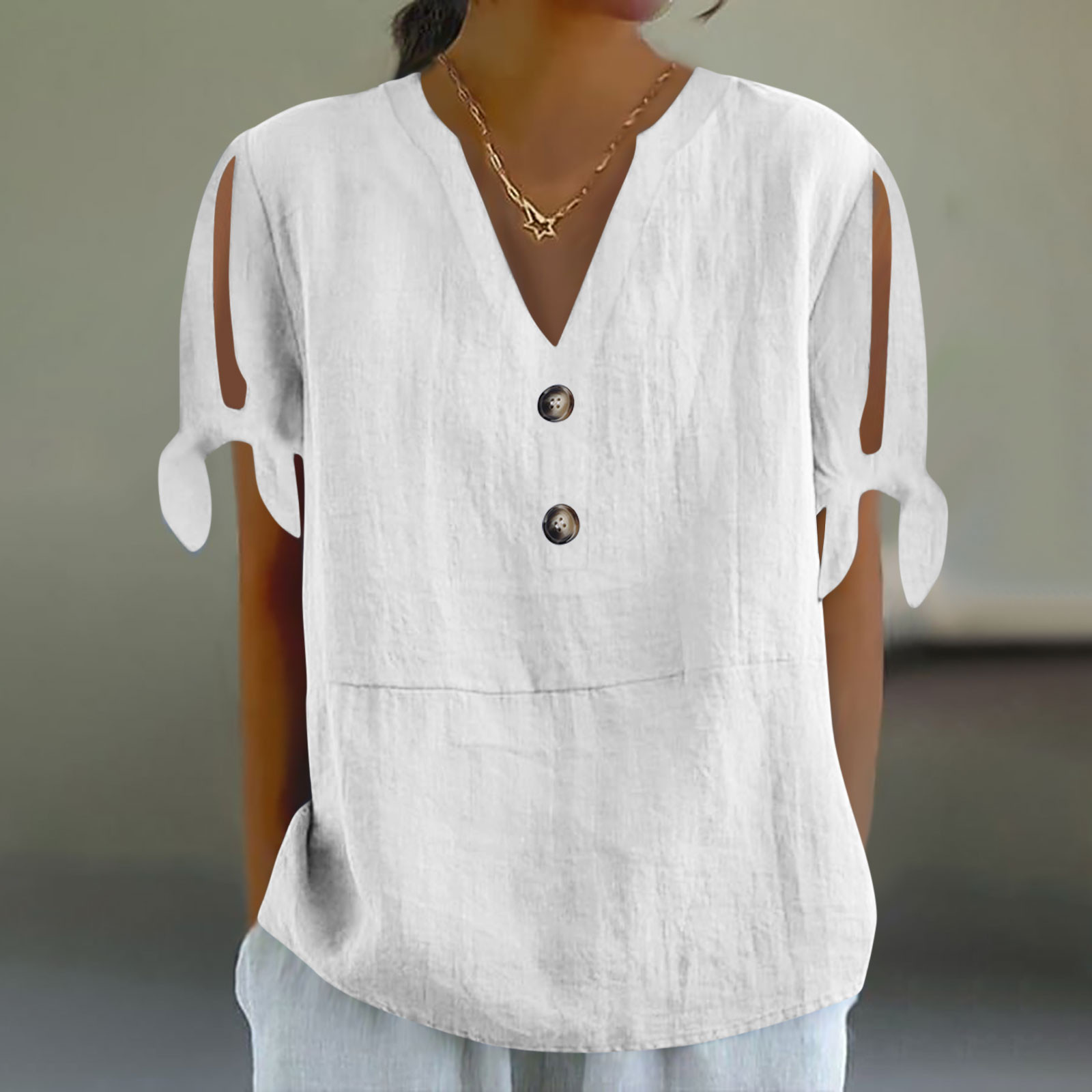 Olyvenn Stylish Cotton Linen Shirts for Women Summmer Slit Short Sleeve Casual Tops Henley Vcation Beach Lounge Button Lightweight Tunic Blouse White XL
