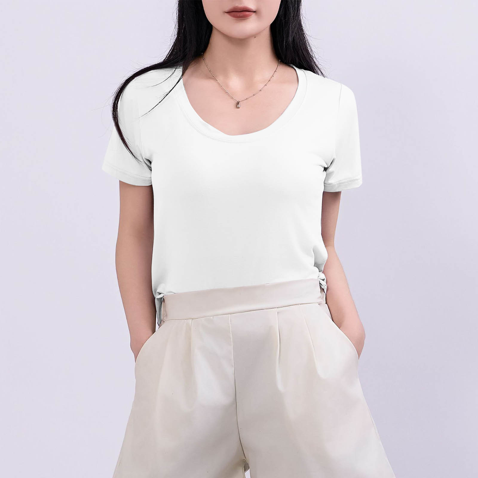 Olyvenn Stylish Women's Short Sleeve Cotton Scoop Neck Tee Summer Casual Solid T-Shirt Comfyable Breathable Modal Tops White L