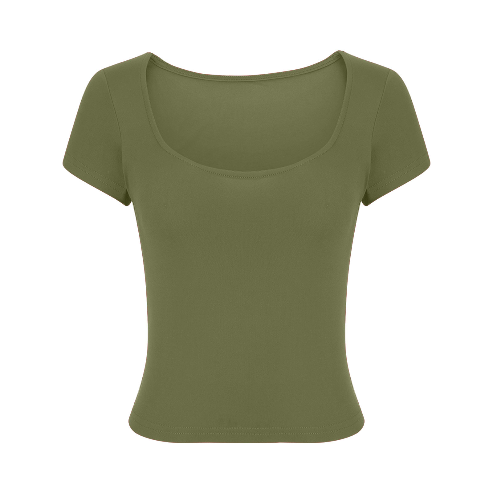 - Olyvenn Deals Women's Soft Crop Tops T-Shirts Solid Color Short Sleeves Shirts Scoop Neck Casual Cute Slim Fit Yoga Blouses Tees Army Green 12