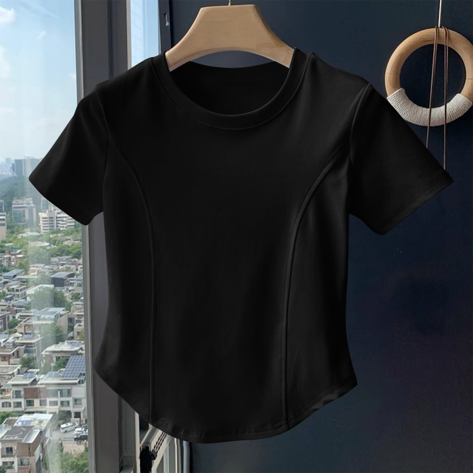 Olyvenn Stylish Womens Summer Crop Tops Y2k Baby Tees Trendy Cute Short Sleeve Slim Fit Ribbed Crew Neck T Shirt Black S