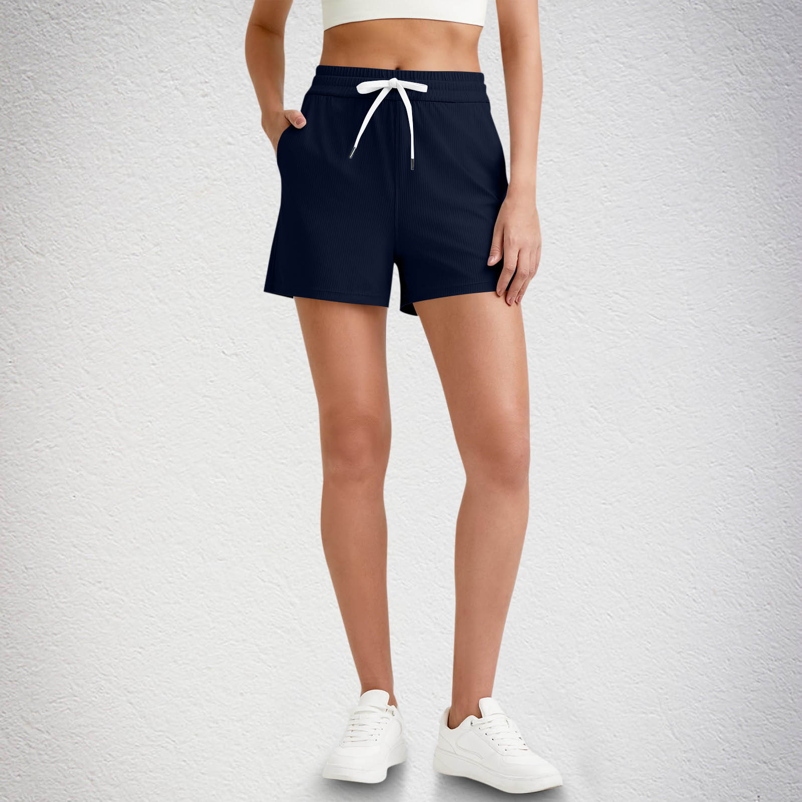 Olyvenn Gym Shorts Women Ribbed High Waisted Workout Shorts Casual Drawstring Pants Women Ladies Summer Lounge Outfits Dark Blue M