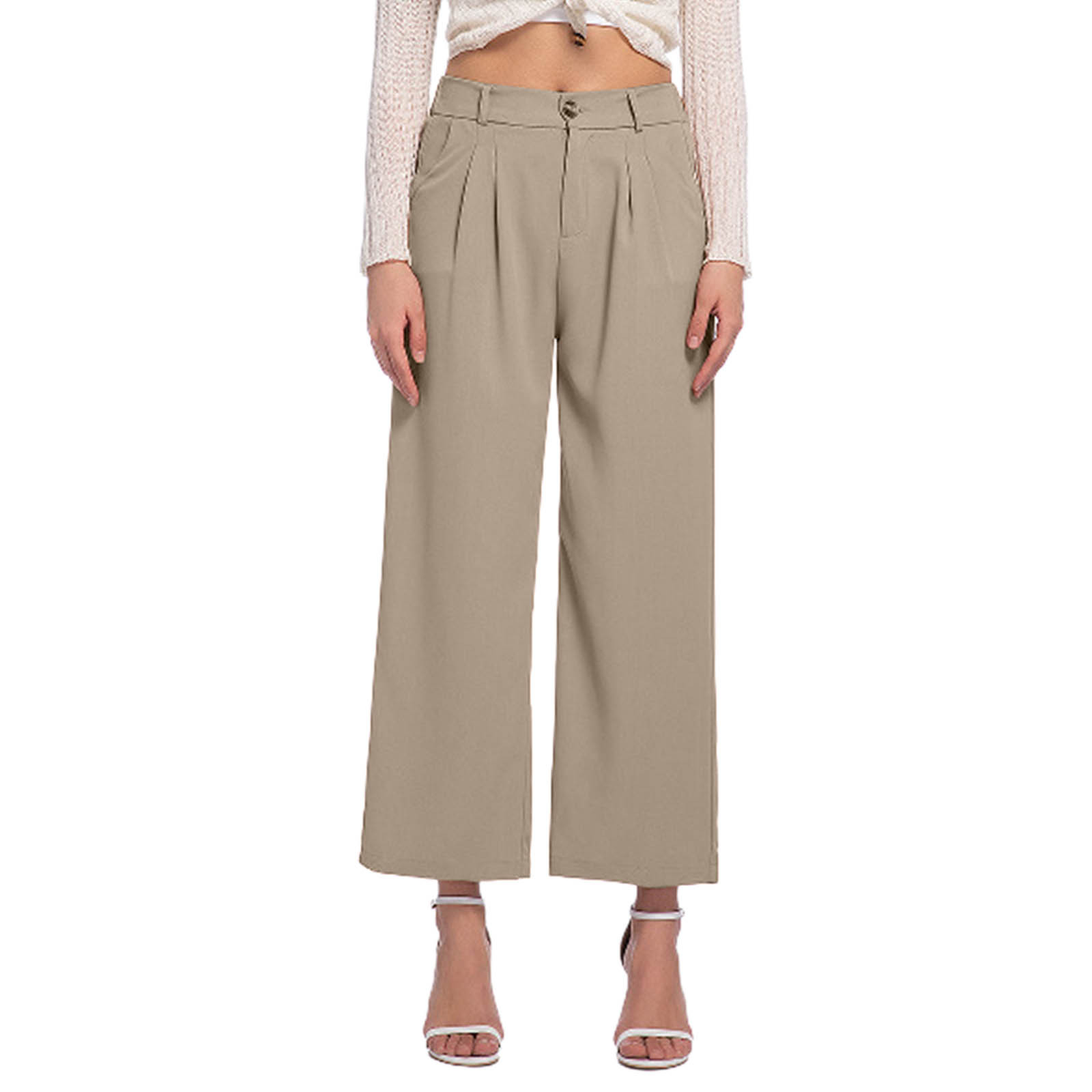- Olyvenn Women Dress Pants High Waisted Wide Leg Pants Business Casual Flowy Loose Palazzo Trousers with Pockets Beige S