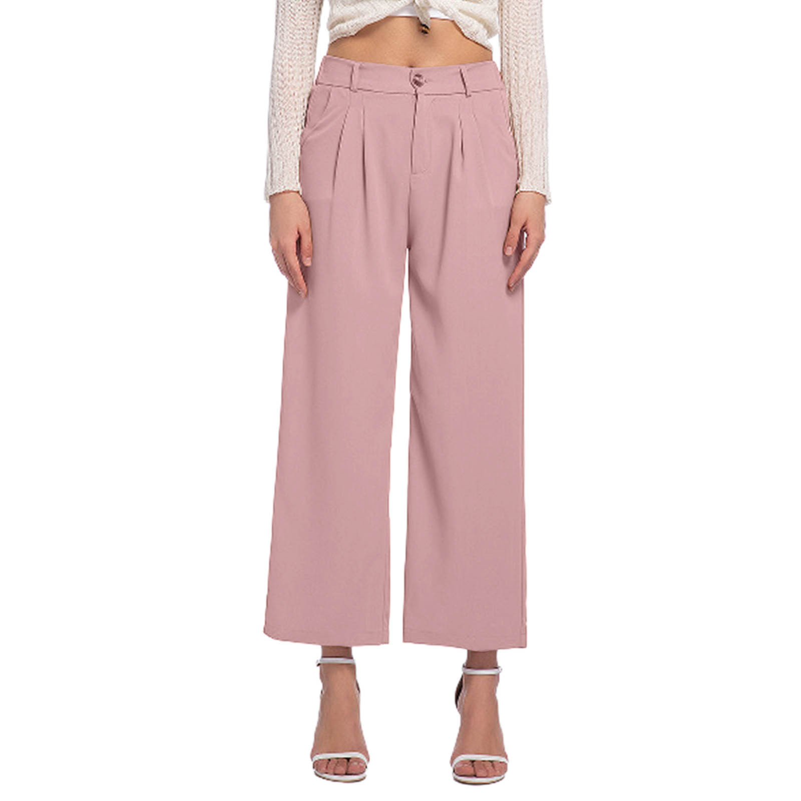 Olyvenn Women Dress Pants High Waisted Wide Leg Pants Business Casual Flowy Loose Palazzo Trousers with Pockets Pink XLWomen's Spring And Solid Color Versatile Straight Tube High Waisted Commuting Suit Pants Wide Leg Pants