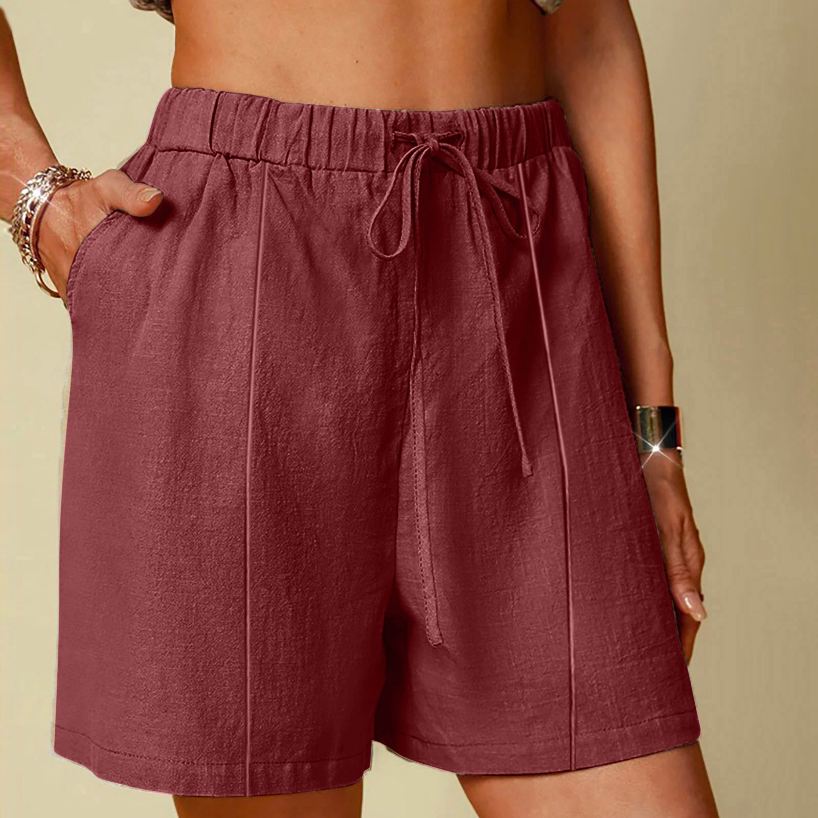Olyvenn Womens Plus Size Shorts Casual Elastic Waist Wide Leg Suit Tailored Shorts Cotton Linen Summer Dressy Shorts with Pockets Wine XL