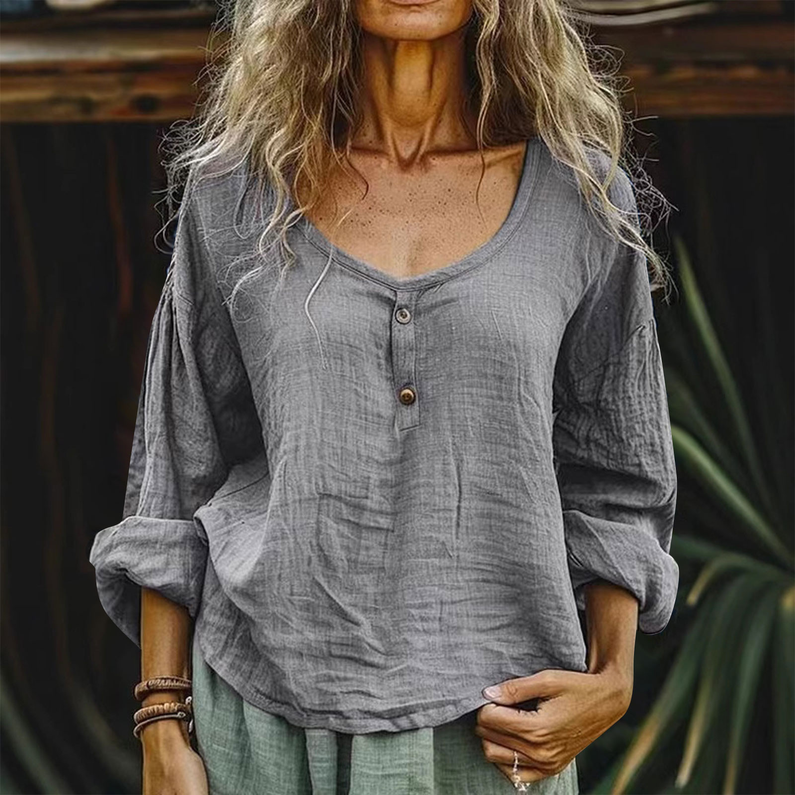 Olyvenn Womens Summer Cotton Linen Tops Long Sleeve Shirts Business Casual Outfits Trendy Fashion Beach Vacation Clothes 2025 Gray XL