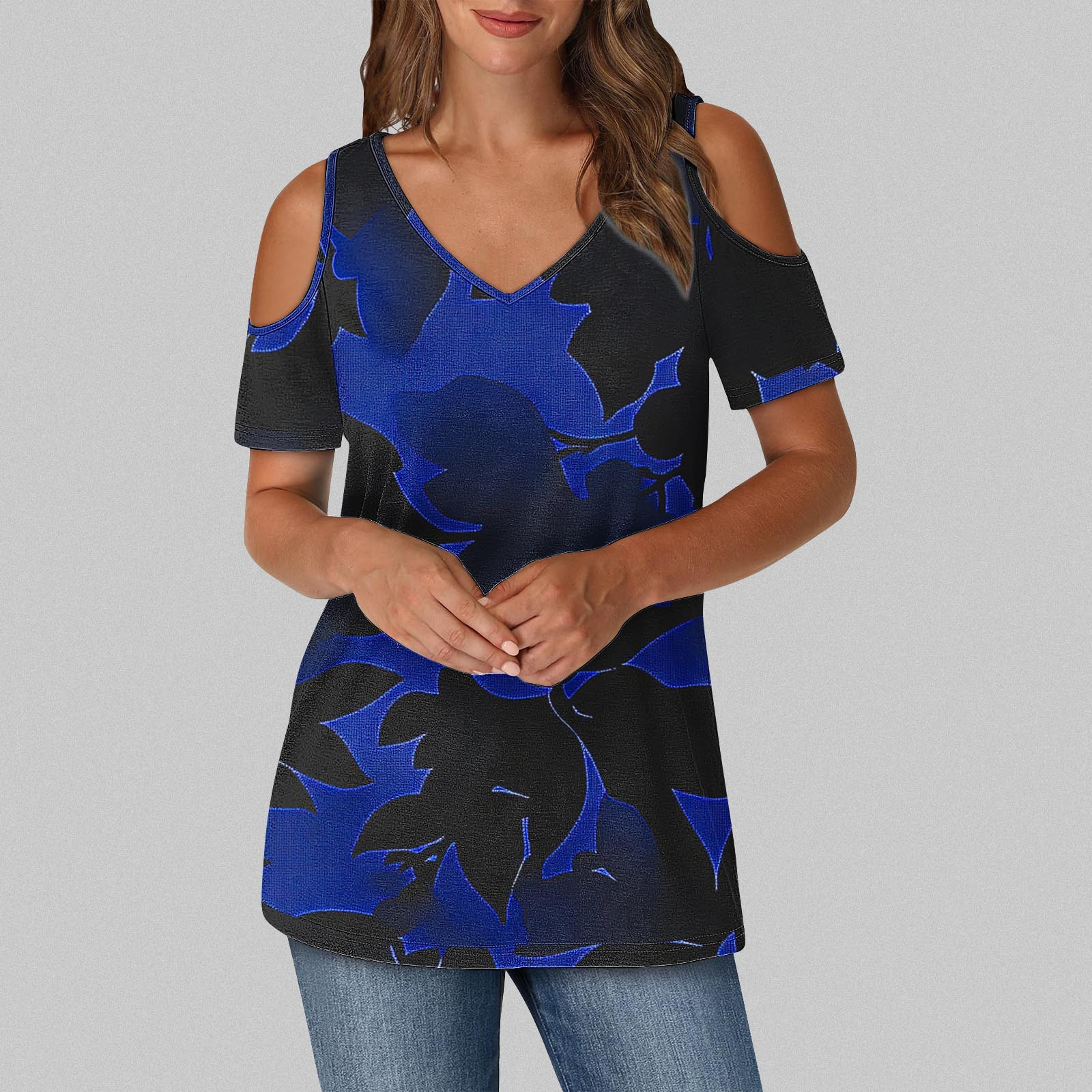 Hero image 0 of Olyvenn Womens Summer T Shirts Casual Ladies V Neck Tops Short Sleeve Cold Shoulder Loose Fit Blouse 2025 Trendy Clothing Multicolor M, 0 of 6