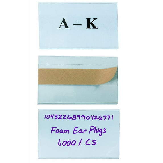 - Plastic label holders for warehouses, shipping stores, racks and bins. Includes 50 label holders. Self-adhesive backing; Cards included.