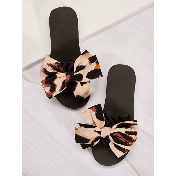 Hero image 0 of Open Toe Brown Bow Decor Sliders, 0 of 3