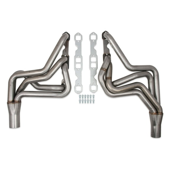 These Hooker RacingHeart headers are for Street Stock cars with Small Block Chevy engine. They fit 73-88 GM A/G-Body vehicles as well as 70-81 GM F-body vehicles. They have 1-5/8 inch primaries with 3 inch collectors, 3/8 inch thick flanges to prevent warping and have merge spears for increased velocity. These are Natural Stainless Steel.;