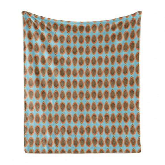 Hero image 0 of Orange Blue Soft Flannel Fleece Throw Blanket, Tropical Fruit Halved Papayas Pattern, Cozy Plush for Indoor and Outdoor Use, 50" x 60", Sky Blue Burnt Sienna, by Ambesonne, 0 of 5