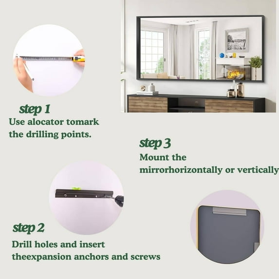 Organnice Rectangular Mirror Modern Black Frame Bathroom Vanity Mirror Clean Glass 55"L*30"W