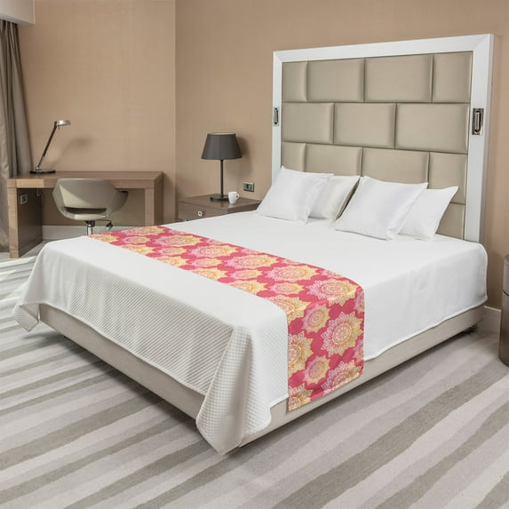 Oriental Bed Runner, Continuous Pattern of Mandala Inspired Ornate, Decorative Accent Bedding Scarf for Hotels Homes and Guestrooms, King, Pastel Pink Marigold, by AmbesonneOriental Bed Runner Continuous Pattern Mandala Inspired Ornate Decorative Accent Bedding Scarf Hotels Homes Guestrooms King Pastel Pink Marigold AmbeOriental Bed Runner Continuous Pattern Mandala Inspired Ornate Decorative Accent Bedding Scarf Hotels Homes Guestrooms Twin Pastel Pink Marigold AmbeOriental Bed Runner Continuous Pattern Mandala Inspired Ornate Decorative Accent Bedding Scarf Hotels Homes Guestrooms Queen Pastel Pink Marigold Amb