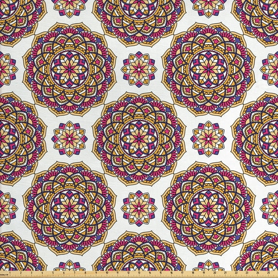 Hero image 0 of Oriental Fabric by the Yard, Mandala Inspired Pattern with Flowers Nature Motifs from the Eastern Folklore, Decorative Upholstery Fabric for Sofas and Home Accents, Multicolor by Ambesonne, 0 of 4