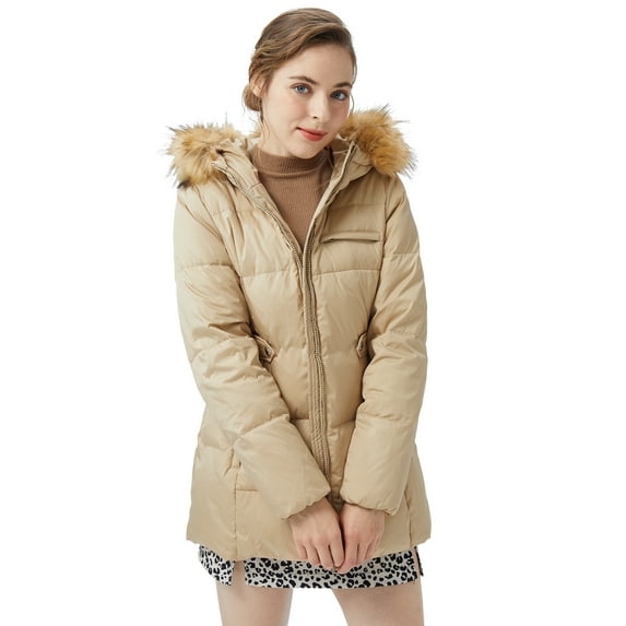 Hero image 0 of Orolay Women's Mid Length Thickened Down Jacket Puffer Hooded Down Coat with Faux Fur Khaki L, 0 of 6