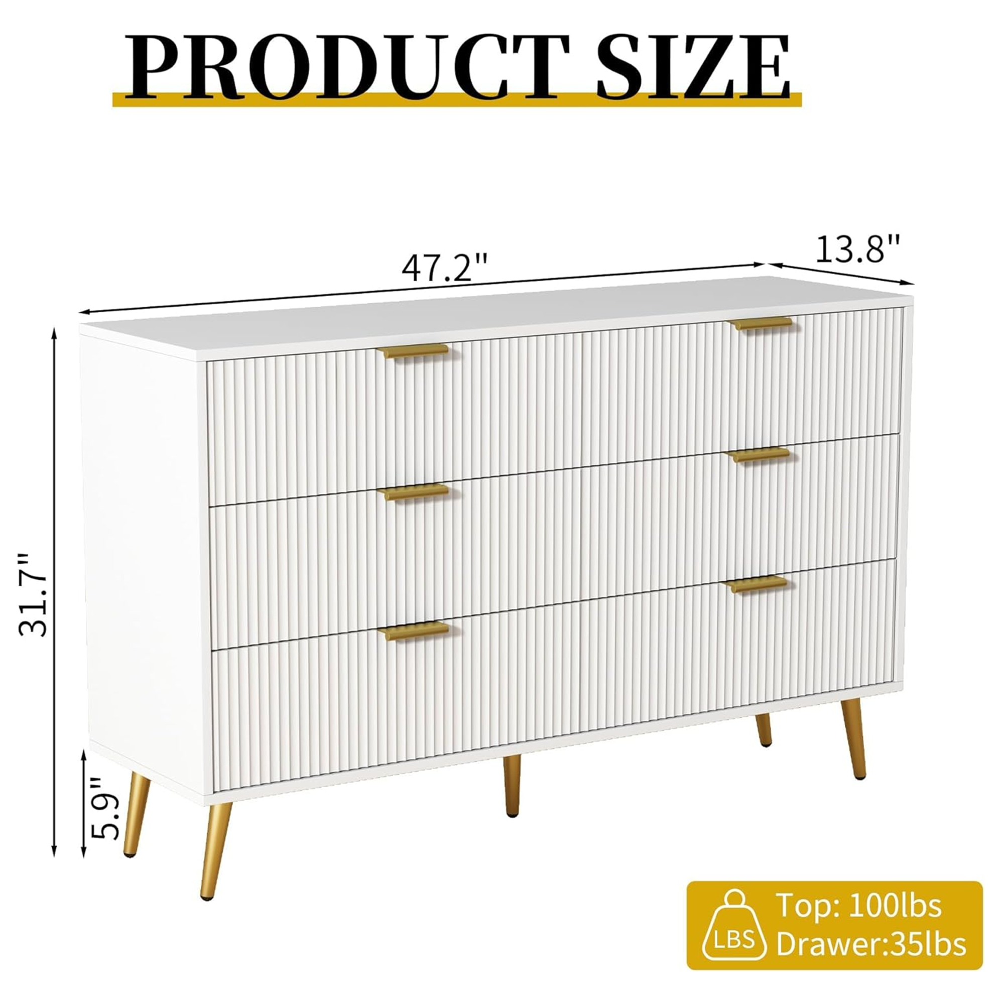- Generous Dimensions: Measures 13.8"D x 47.2"W x 31.7"H, with each drawer capable of holding up to 35 pounds.