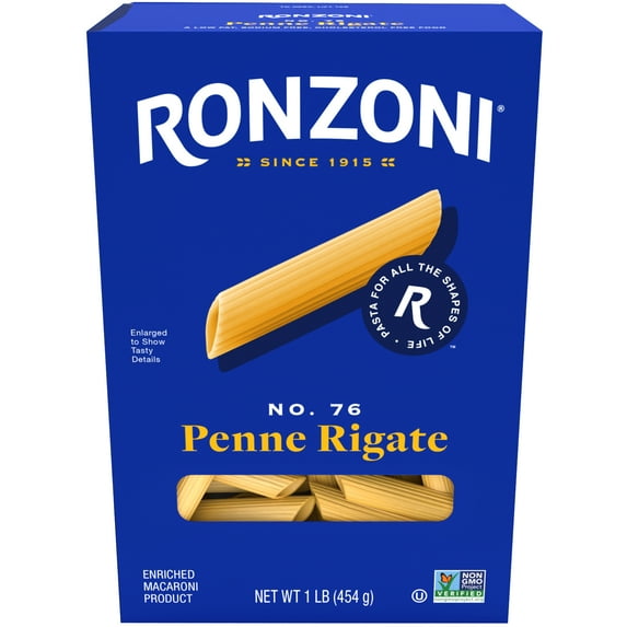 - RIDGED TO HOLD FLAVOR: Ronzoni Penne Rigate is tube-shaped and ridged for chunky sauces, and works well in baked dishes.