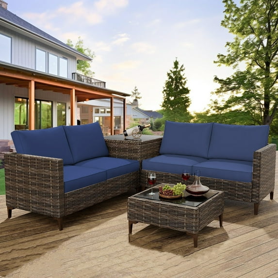 414.7 out of 5 Stars. 41 reviewsShipping, arrives in 3+ daysHighsound 4 Pcs Patio Rattan Wicker Furniture set, Outdoor Sectional Sofa Set with Large Coffee Table, Blue $160.06