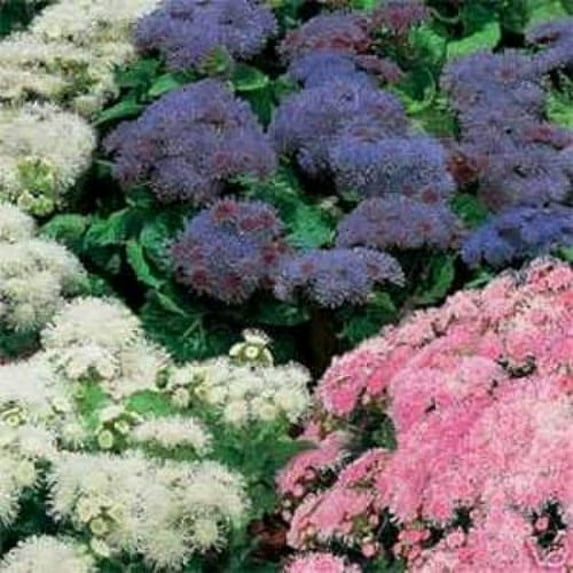 What a wonderful combination of pink, blue and pure white in the Ageratum Mexicanum Mix. This Ageratum flower seed mix produces earlier blooms and long-lasting blooms that make great cut flowers for either fresh or dried arrangements. Ageratum love the sun, and they work well when used in containers and in flower garden borders. They are compact plants and stand 12 inches tall and spread 12 to 15 inches in width.