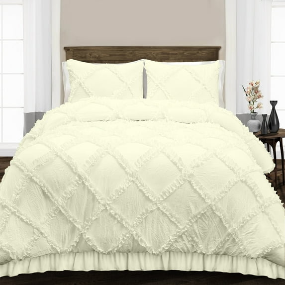 Hero image 0 of Oversized Queen Comforter Diamond Ruffle Ivory Luxurious Collection Microfiber Fill Duvet Insert Box Stiched Quilted Fluffy Soft All Season Comforter with Pillowcases & Premium Piping, 0 of 7