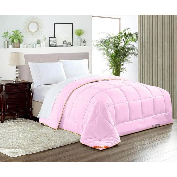Hero image 0 of Oversized Queen Comforter Solid Pink Luxurious Collection Microfiber Fill Duvet Insert Box Stiched Quilted Fluffy Soft All Season Comforter with Pillowcases & Premium Piping, 0 of 7